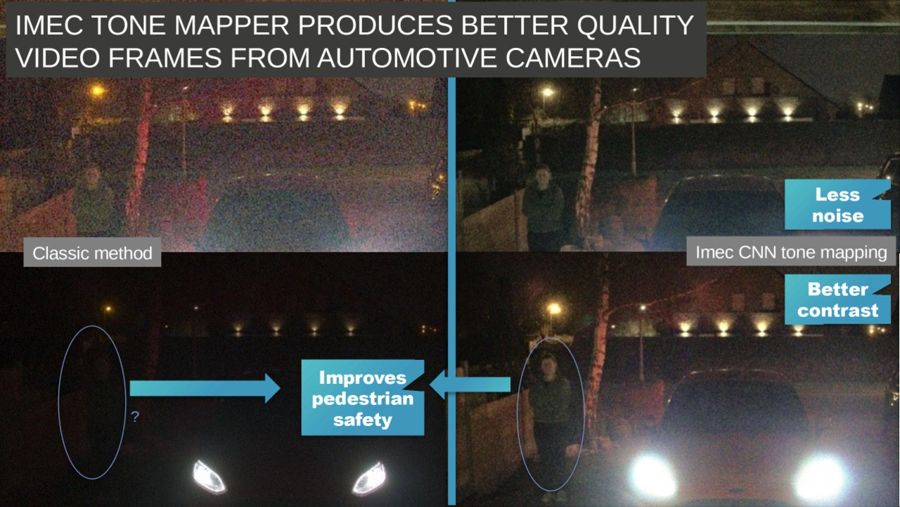 Die IPI-Forscher vom imec und der Universität Gent haben das Beste aus beiden Welten kombiniert und ein automatisches Tone Mapping entwickelt - einen intelligenten Rechenprozess, der HDR-Bilder mit hoher Bitrate in Bilder mit niedriger Bitrate und geringem Dynamikbereich (LDR) umwandelt, ohne dass dabei Informationen verloren gehen, die für die Wahrnehmung im Auto entscheidend sind.