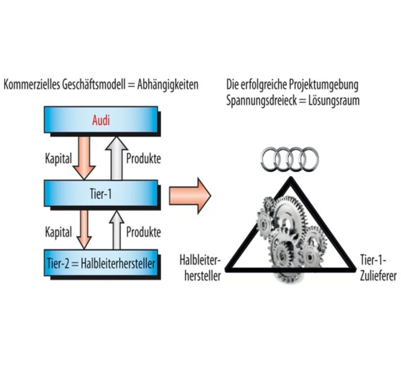 Durch eine systematische strategische Neuausrichtung der Halbleiterstrategie wird sich die Zusammenarbeit ändern. Um Innovationen vom ersten Tag an mit höchster Qualität einzusetzen, müssen Teile der Entwicklungsarbeit gemeinsam von Audi, dem Tier-1-Zulieferer und dem Halbleiterhersteller geleistet werden. Diese Zusammenarbeit soll prinzipiell weder die kommerziellen Verknüpfungen noch die Verantwortungskette verändern.