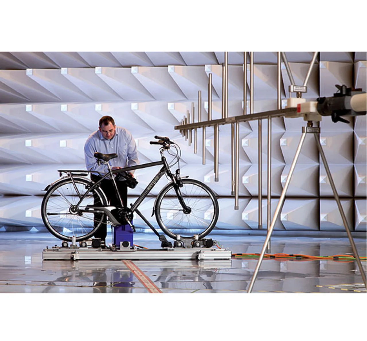 Die Erfahrung des VDE-Instituts zeigt, dass die bisherigen Regelungen nicht genügen. So beschreibt die UN ECE-R 100, vor allem die neue Ausgabe, lediglich Mindestanforderungen an die elektrische Sicherheit eines Elektrofahrzeuges. Das VDE-Institut empfiehlt dringend, den Prüfumfang zu ergänzen, zum Beispiel mit Prüfungen der elektrischen Sicherheit in Worst-Case-Szenarien, der Messung des Isolationswiderstandes bei sehr hoher Luftfeuchtigkeit, Batterieprüfungen sowie die funktionale Sicherheit nach ISO 26262-2 bis -9. Das VDE-Institut hat langjährige Erfahrung im Bereich der EMV- und Sicherheitsprüfungen nach IEC-, EN- und VDE-Normen und ist bereits heute in der Lage, die geforderten Kriterien der UN ECE, inklusive der zusätzlich notwendigen, zu überprüfen. Darüber hinaus stehen nicht nur Elektroautos auf dem Prüfstand: Auch elektrisch unterstützte Fahrräder (EPAC) und E-Bikes (Bild 2) prüft das Prüf- und Zertifizierungsinstitut auf ihre Sicherheit.
