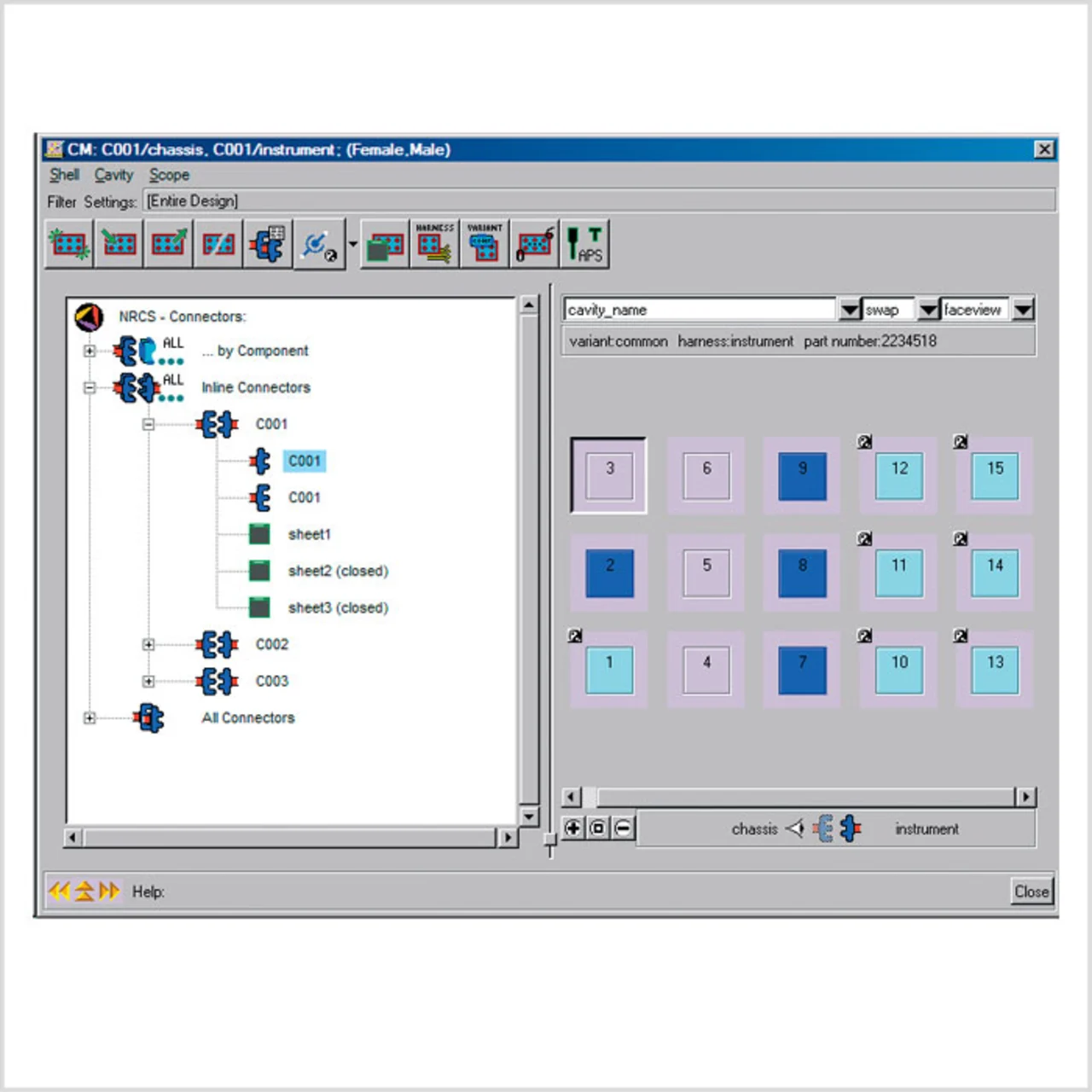 Die Flexibilität geht weit über das reine Varianten-Handling hinaus. Eine generelle Filtermöglichkeit erlaubt es, die Darstellung des Bordnetzes nach benutzerdefinierten Kriterien aufzubereiten. Somit kann z.B. auch eine Filtermöglichkeit nach Leitungssatzfamilien erfolgen. Die Filtermöglichkeiten können sowohl auf das gesamte Design als auch nur auf spezielle Sheets angewendet werden.