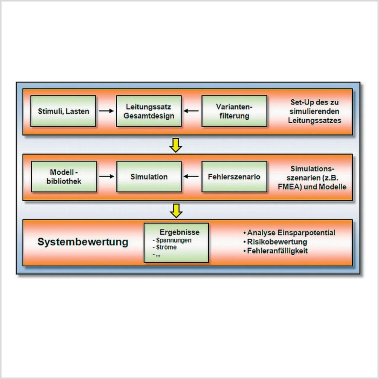 Die angesprochenen Schritte entsprechen im Wesentlichen dem Standard bei der Leitungssatzentwicklung. In jüngster Zeit hat sich aber gezeigt, dass es notwendig ist, einen weiteren Schritt in den Entwicklungsablauf einzubeziehen: die Verifikation des Leitungssatzes mittels Simulation. Dies ist zum einen aus sicherheitstechnischen Aspekten notwendig und zum anderen zur Kosten- und Systemoptimierung.