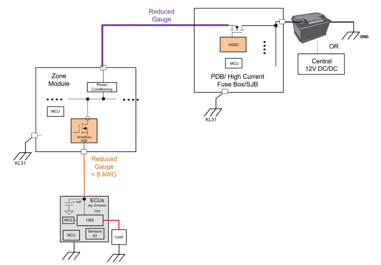 Die Umstellung von domänen- auf zonenbasierte Architekturen in der Kfz-Elektronik bringt tiefgreifende Änderungen für die Stromversorgung im Automobilbereich mit sich. Die traditionell für den Stromkreisschutz eingesetzten Schmelzsicherungen werden dabei durch halbleiterbasierte Lösungen ersetzt.