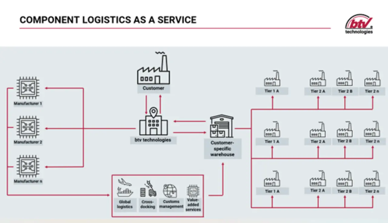Mit dem tak-Modell – hier geht´s zum Erklärvideo – bietet btv technologies ein modulares, digitales und transparentes Supply-Chain-Konzept, das OEMs sowie Tier-1- und Tier-2-Zulieferer von der Beschaffung über Programmierung und Value Added Services bis zur Langzeitlagerung und Auslieferung begleitet. Das Modell steht für: