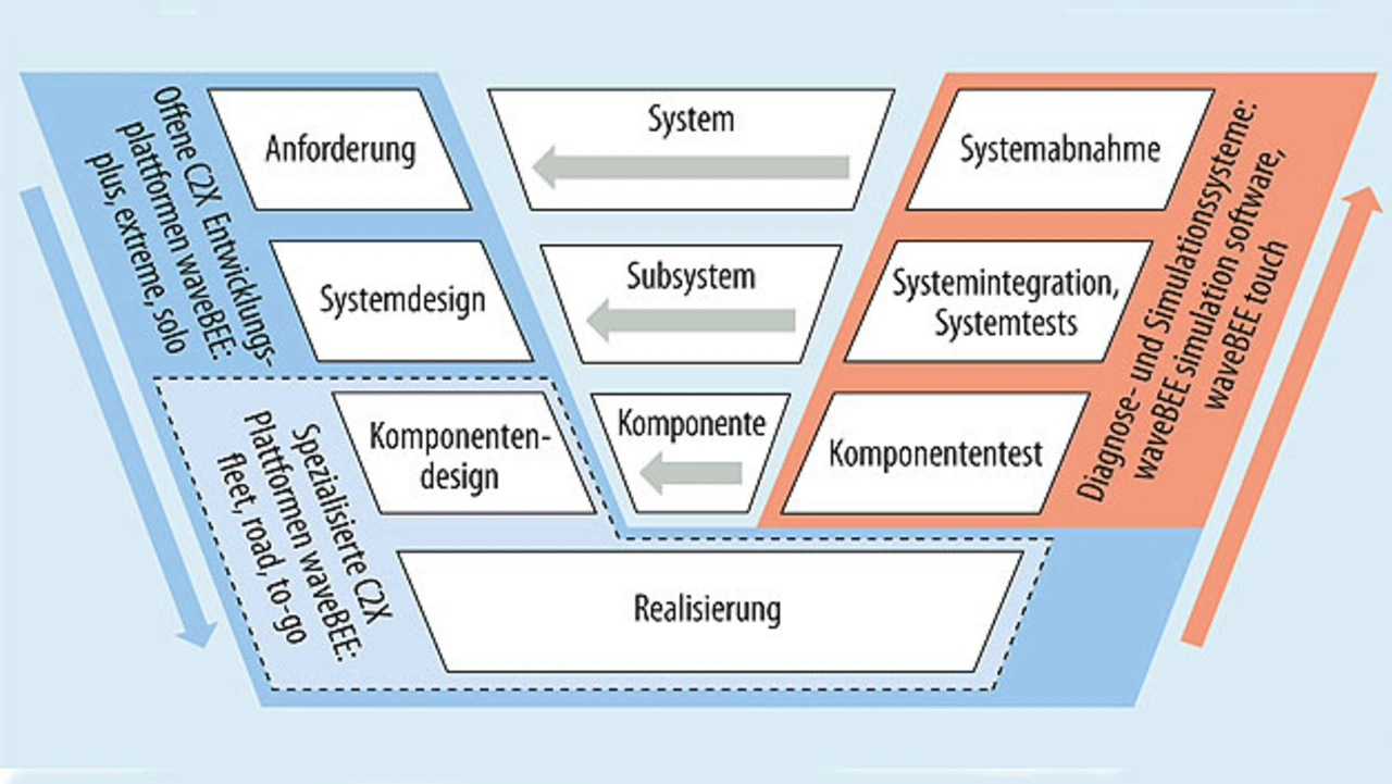 Entwicklungszyklen in SiL- und HiL-Setups werden dadurch verkürzt. V2X-Anwendungen können mit waveBEE unter Laborbedingungen implementiert und getestet werden. Anschließend kann das waveBEE-System schnell und reversibel im Fahrzeug oder einer ITS-Station (Roadside ITS-S oder Central ITS-S) integriert und unter Realbedingungen in End-to-End Tests erprobt werden – ohne Erfordernis, die Entwicklungsplattform zu wechseln. Auf waveBEE unterstützte EntwicklungsFrameworks wie Automotive Data and Time-Triggered Framework (ADTF) sowie die WDS-Schnittstelle erleichtern den Entwicklern die Integration in bestehende Systemumgebungen und Versuchsaufbauten. Die Unabhängigkeit vom Physical Layer – hybrider Kommunikationsansatz unterstützt sowohl WAVE (IEEE 802.11p) als auch Mobilfunk – vergrößert das Einsatzspektrum der Systeme.