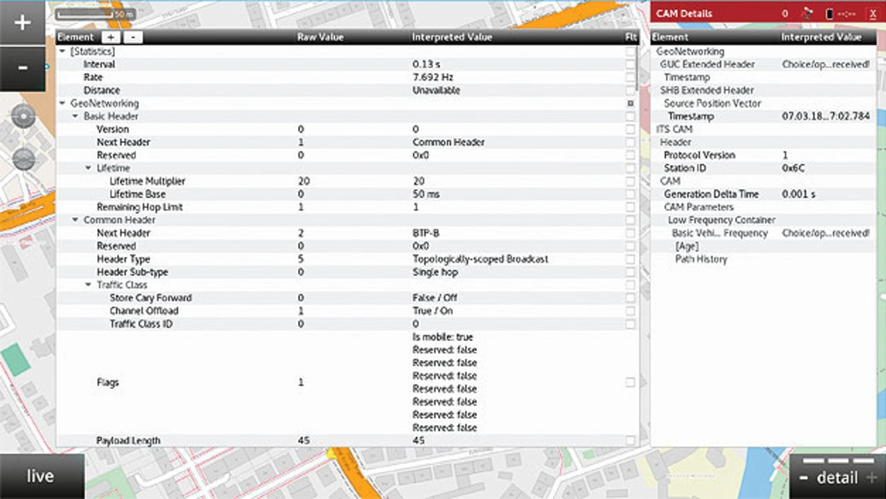 Eine Analyse der in der Luft befindlichen Nachrichten ist dafür genauso wichtig, wie die Visualisierung auf einer Karte. Wenn ein Anwendungsentwickler die Position der Fahrzeuge, deren Geschwindigkeit und Fahrtrichtung kennt, kann er entscheiden, ob die von ihm entwickelte Anwendung die Daten korrekt ausgibt und die Situation korrekt bewertet. Wird zu den Fahrzeugen noch die Infrastruktur hinzugefügt, die ebenfalls per V2X kommuniziert, wird der Umfang eines möglichen Gesamtsystemtests deutlich. Dabei unterstützt das waveBEE-touch-V2X-Diagnosesystem den Entwickler (Bild 3).