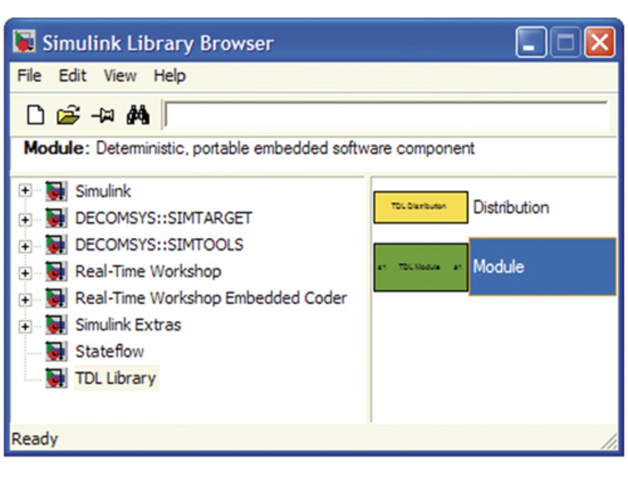 Um eine TDL-Komponente zu editieren, wird der entsprechende Block aus dem „Simulink Library Browser“, wie Bild 6 darstellt, in das entsprechende Simulink-Modell gezogen.