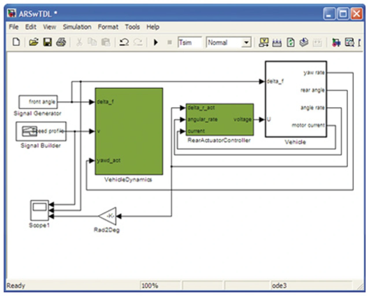 VisualCreator kann als Standalone-Werkzeug oder integriert in Matlab/Simulink verwendet werden. Nachfolgend wird dieses Werkzeug in Matlab/Simulink anhand einer vereinfachten Fallstudie zur aktiven Hinterachslenkung von Magna Steyr Fahrzeugtechnik skizziert [2]. Diese Fallstudie steht als „Product Demo“ auch im Web zum Ansehen zur Verfügung [7].