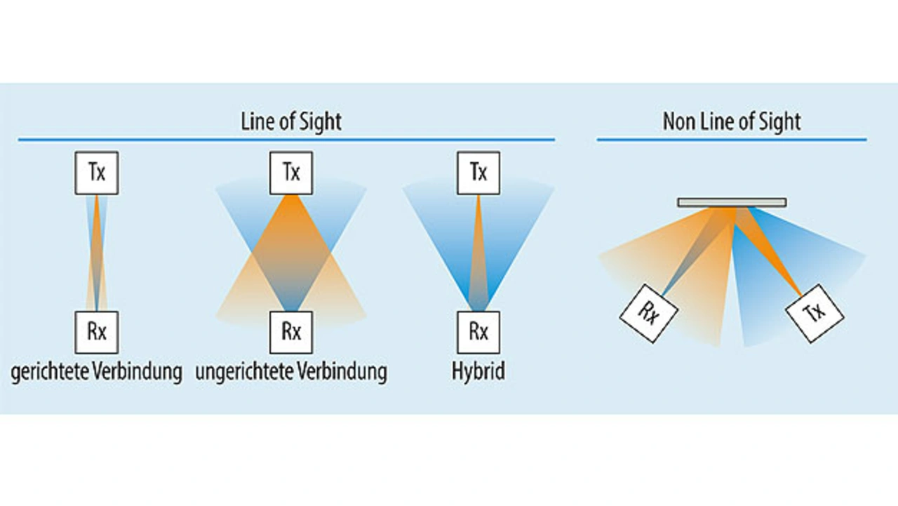 Ein weiteres Merkmal optischer Datenlinks ist die Unterscheidung zwischen einer direkten (Line of Sight, LOS) oder einer indirekten (Non Line of Sight, Non-LOS) Sichtverbindung. LOS-Systeme sind prinzipiell leistungsstärker und reduzieren das Symbolübersprechen aufgrund von Mehrweg-Empfang. Non-LOS-Verbindungen hingegen sind stabiler, weil mögliche Abschattungen keine so große Rolle spielen. Insofern kann über die reflektierenden Oberflächen eine Datenverbindung zwischen Sender und Empfänger hergestellt werden.