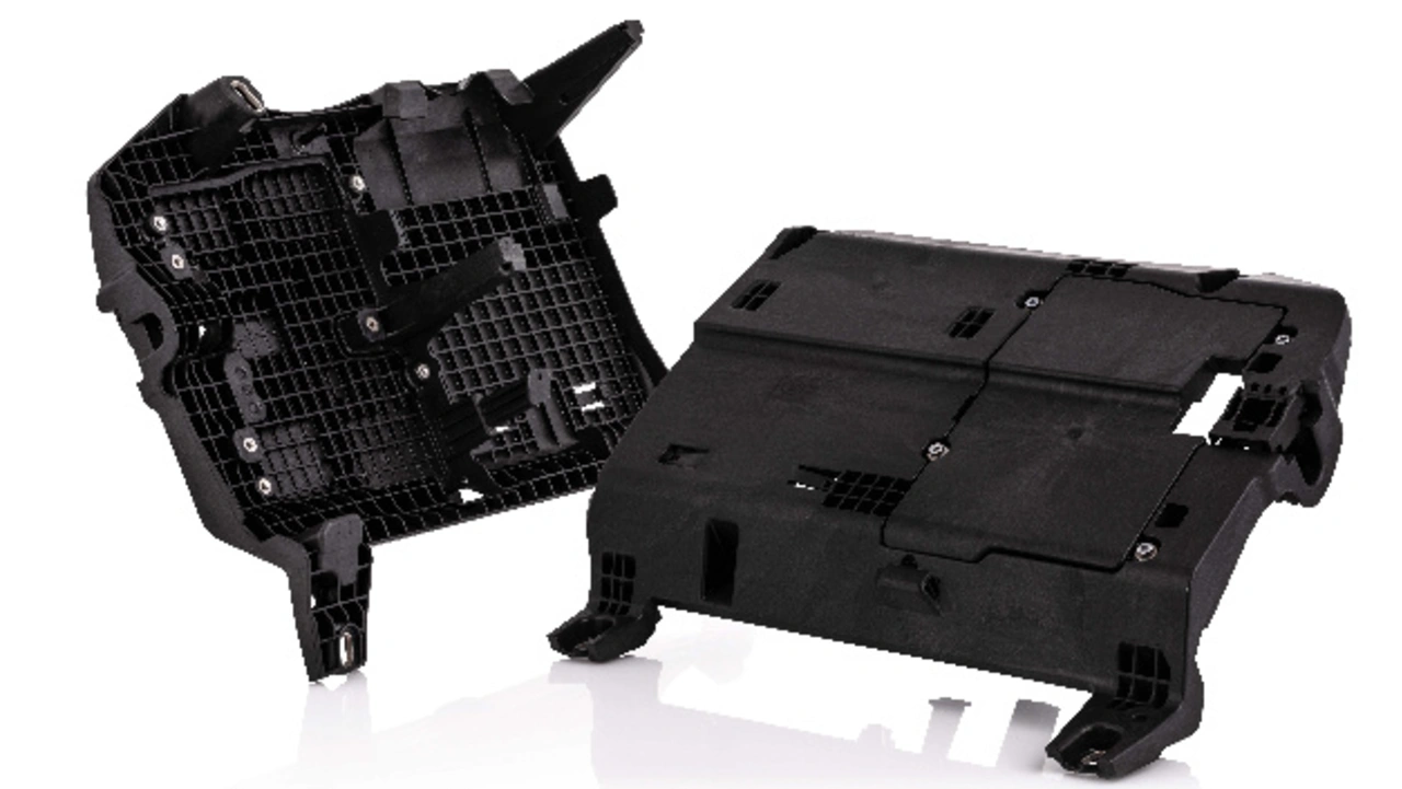 Das macht ein Kunststoff-Bauteil nicht nur sparsamer im Materialeinsatz und deutlich leichter im Gewicht, sondern es hat auch funktionelle Vorteile: Die physikalisch geschäumten Formteile weisen eine bessere Dimensionsstabilität auf, denn das injizierte Gas sorgt dafür, dass sich das Bauteil kaum verzieht. Pöppelmann K-TECH hat die Kennwerte für die MuCell-Materialien (TSG) im geschäumten Zustand festgelegt und produziert bereits diverse Serienbauteile für namhafte Hersteller im TSG-Verfahren, zum Beispiel Batterieboxen, Halter und Bodenplatten.