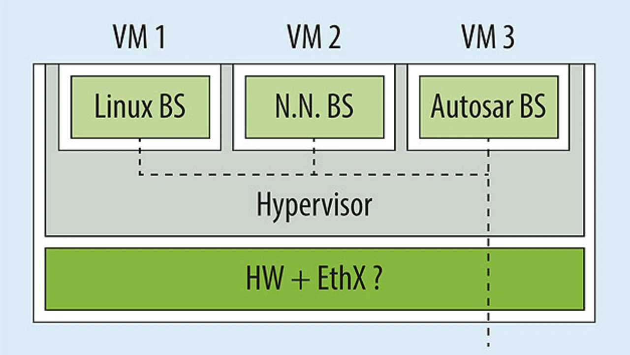 Wie die Anbindung dieser VMs an das Automotive-Ethernet-Netzwerk erfolgt, bleibt hier offen. Grundsätzlich bestehen folgende Anforderungen an die Kommunikation: