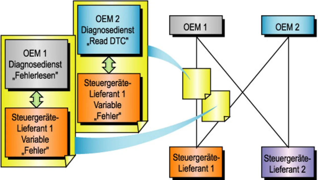 Ein wesentlicher Nachteil der heute beim Fahrzeug-Hersteller implementierten Diagnose-Prozesse liegt damit auf der Hand: Der Austausch der Diagnose-Informationen mit dem Steuergeräte-Hersteller in einem umfassenden Datenaustausch ist nicht berücksichtigt. Damit dieser Austausch möglich ist, müssen zwei konkurrierende Anforderungen erfüllt sein: