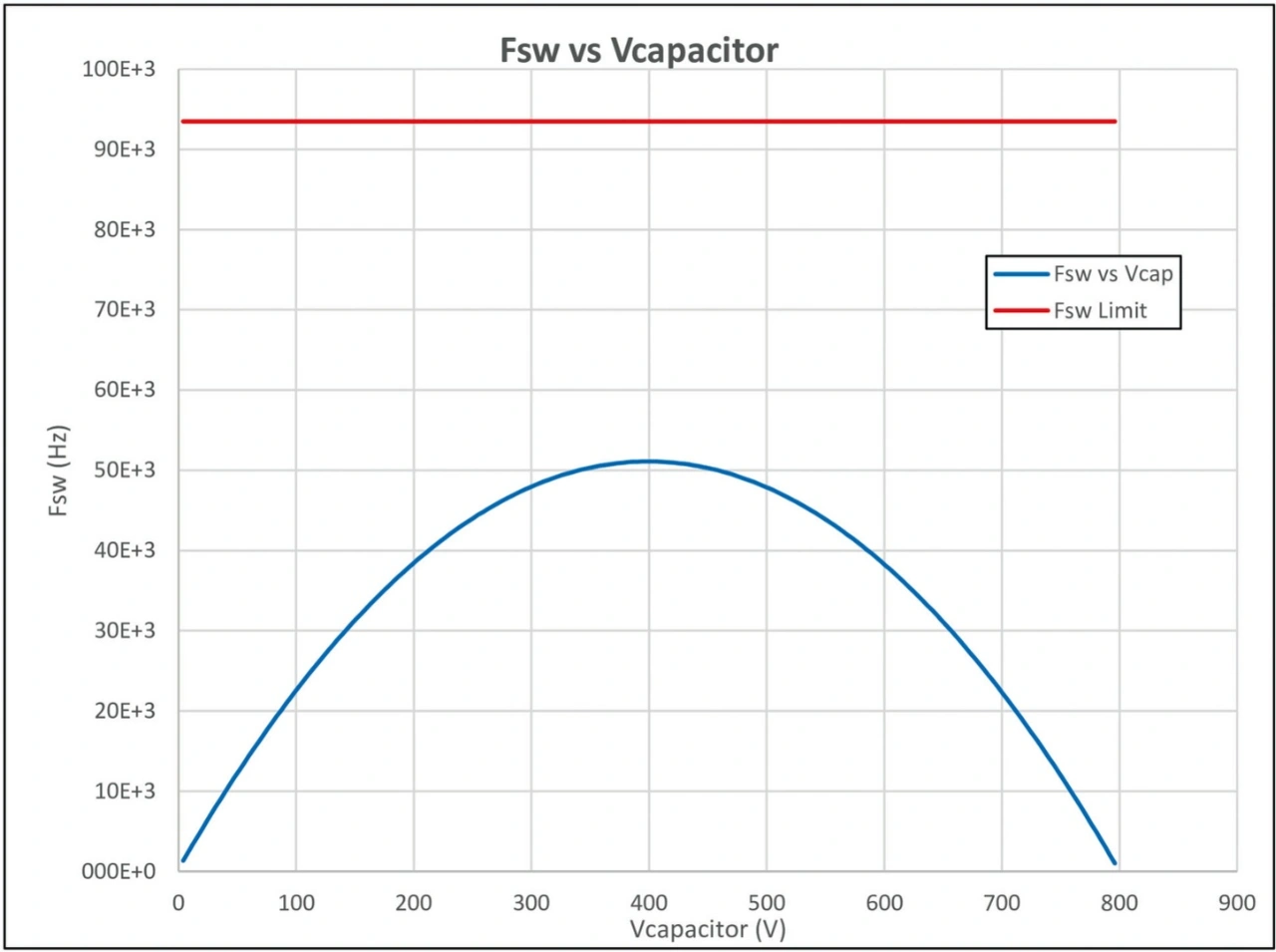 FSW = (VCAP – (V²CAP/VBATT)) / (L x dI) (Gleichung 6)