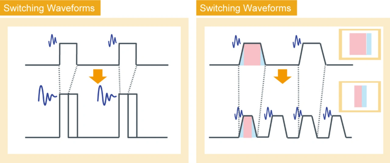 Um diesen Herausforderungen zu begegnen hat der Elektronik- und Halbleiterhersteller Rohm eine neue Technologie namens Nano-Pulse-Control entwickelt. Auf der Basis von hochspannungsfesten BiCDMOS-Prozessen und ultraschneller Pulssteuerung kann die Nano-Puls-Technologie das Schaltrauschen frühzeitig erkennen und kompensieren.