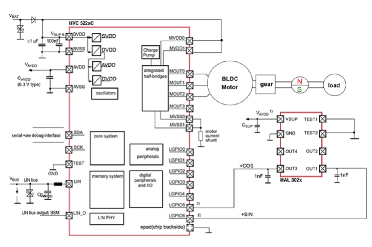 Hier spielen die neue Embedded HV-Controller-Familie HVC5x und die Fast Angular Hall-Sensor-Familie Hal302x von TDK-Micronas (Vertrieb: GLYN) eine entscheidende Rolle.