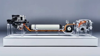 »Beim Antriebsystem des BMW i Hydrogen NEXT erzeugt das Brennstoffzellensystem bis zu 125 kW (170 PS) elektrische Energie, die aus der chemischen Reaktion von Wasserstoff und Sauerstoff aus der Luft gewonnen wird«, erklärte Jürgen Guldner, Leiter BMW Group Wasserstoff-Brennstoffzellen-Technologie und –Fahrzeugprojekte. Somit stößt das Fahrzeug nur Wasserdampf aus. Der elektrische Wandler, der sich unterhalb der Brennstoffzelle befindet, passt deren Spannungsniveau an die des elektrischen Antriebs sowie der Leistungspuffer-Batterie an. Diese wird von der Bremsenergie sowie der Energie der Brennstoffzelle gespeist. Im Fahrzeug selbst sind zwei 700-bar-Tanks untergebracht, die zusammen sechs Kilogramm Wasserstoff fassen. »Dies garantiert große Reichweiten bei allen Wetterbedingungen. Der Tankvorgang nimmt nur drei bis vier Minuten in Anspruch«, erläutert Guldner. Voll umfänglich im BMW i Hydrogen NEXT integriert ist auch der E-Antrieb der fünften Generation, wie er erstmalig im BMW iX3 zum Einsatz kommen wird. Die Leistungspuffer-Batterie, die oberhalb der E-Maschine positioniert ist, kann beispielsweise beim Überholen oder Beschleunigen für zusätzliche Dynamik sorgen.