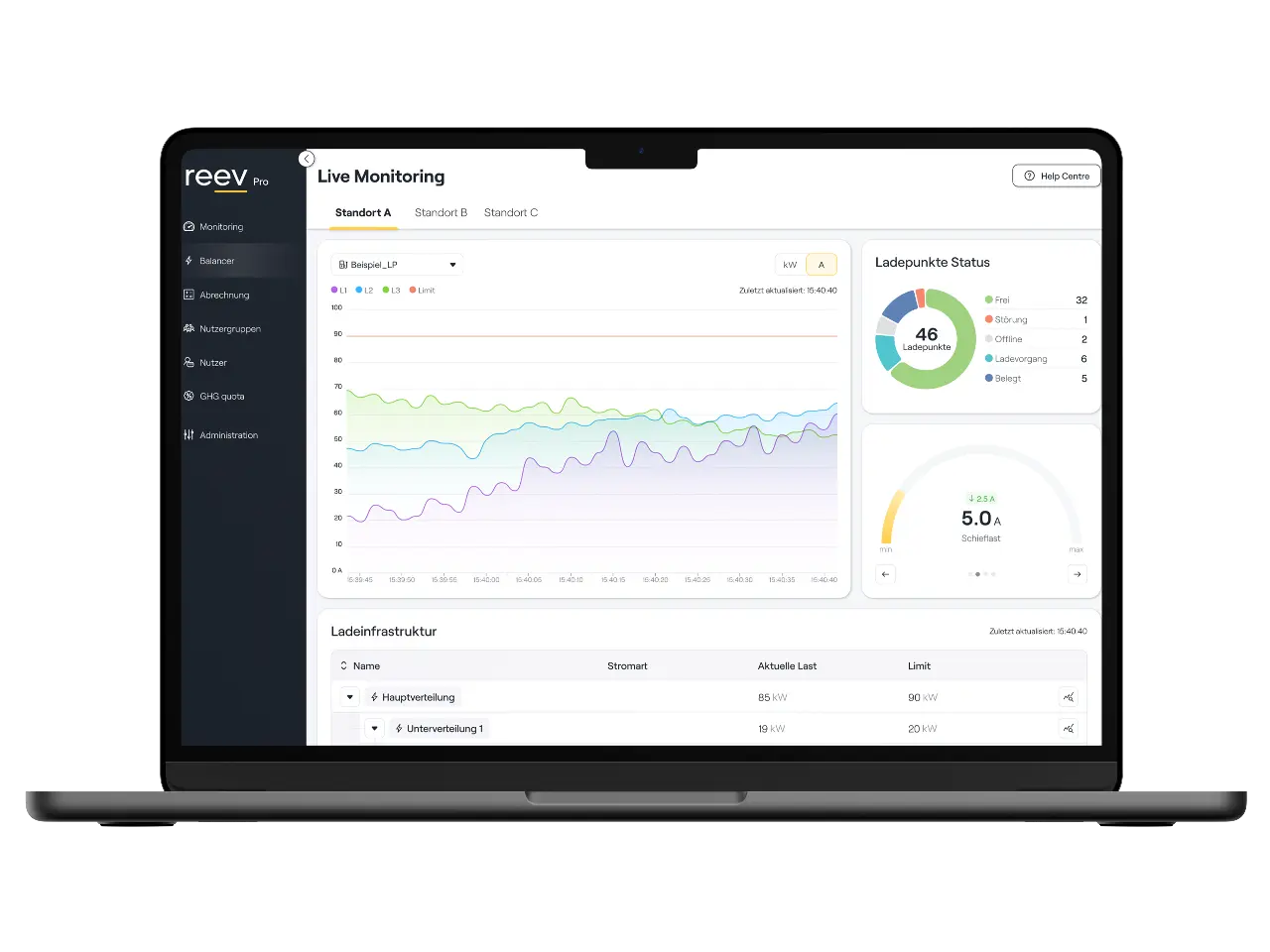 Besonders bei der Installation mehrerer Ladestationen an einem Ort sind effiziente Lösungen gefragt, um Gebäude- und Netzkapazitäten optimal zu nutzen. Intelligente Energiemanagementsysteme (EMS) bieten entscheidende Vorteile, indem sie die Last gezielt steuern und die verfügbare Energie effizient verteilen. Ein Beispiel hierfür ist der Reev Balancer, ein cloudbasiertes EMS, das eine kostengünstige und zuverlässige Alternative zu klassischen hardwarebasierten Systemen bietet.