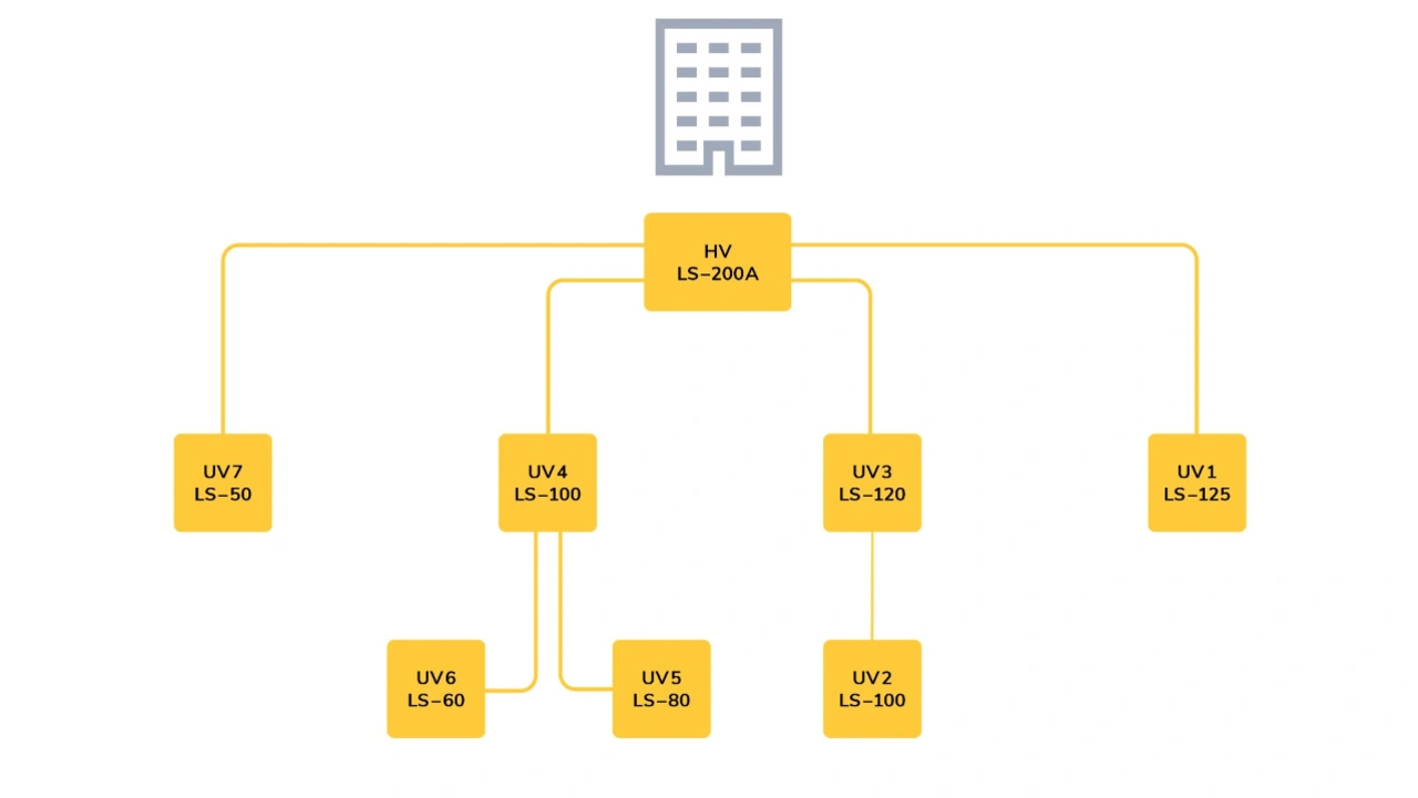 In diesem Beispiel wird die elektrische Last von mehreren Unterverteilungen gesteuert, die jeweils spezifische Kapazitätsgrenzen haben. So liegt das Limit der Unterverteilung 3 (UV3) bei 120 A und ist direkt mit der Hauptverteilung (HV) verbunden. Im Gegensatz dazu hat die Unterverteilung 6 (UV6) ein Limit von 60 A, ist jedoch nicht direkt an die Hauptverteilung angebunden. Stattdessen erfolgt die Verbindung über die Unterverteilung 4 (UV4), die eine Zwischenebene in der Energieverteilung darstellt. Diese Informationen werden zusammengetragen und tabellarisch im System hinterlegt, damit die Software diese berücksichtigen kann (Tabelle 1).