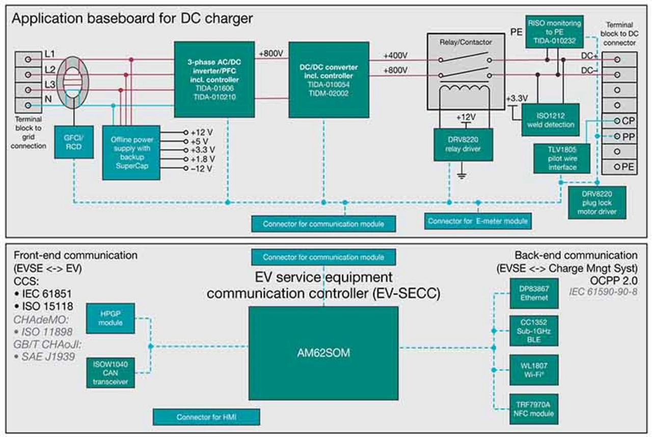 Die für kommerzielle Anwendungen und den privaten Einsatz angebotenen Ladestationen für Elektrofahrzeuge (EVs) enthalten einen Energiezähler, Funktionen zur Detektierung von Fehlerströmen (AC und DC), Isolationsmaßnahmen zur Einhaltung der einschlägigen Sicherheitsnormen, Relais und Schütze samt den entsprechenden Ansteuerschaltungen, bidirektionale Kommunikationsfunktionen sowie Service- und Benutzeroberflächen. Auch wenn der eigentliche Zweck einer Ladestation darin besteht, Energie an das jeweilige Fahrzeug zu übertragen, ist die Umsetzung dieses Energietransfers doch nur der Anfang.