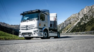 Im Rahmen einer Versuchsreihe hat der eActros 300 als Sattelzugmaschine erfolgreich den Arlbergpass in Österreich überquert – und zwar vollbeladen auf 40 Tonnen. Die Tests in Tirol führten über eine Strecke von 111 km über Bludenz, Stuben, St. Anton und Lech auf streckenweise über 1.800 Meter Höhe.