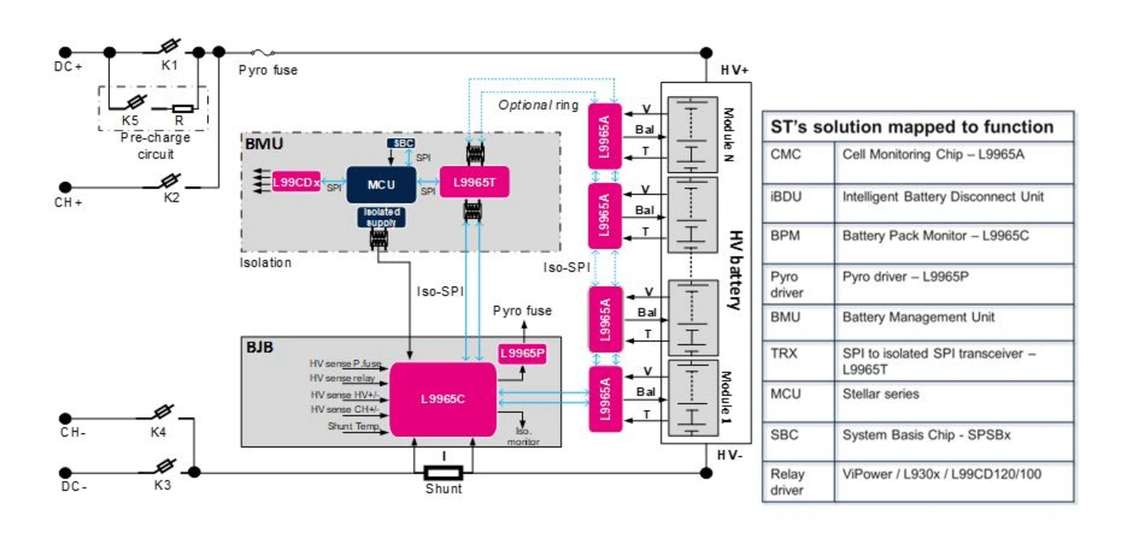 Zwei Komponenten sind für das Messen der Akkuimpedanz erforderlich – ein System zum Anregen des Akkus und ein Erfassungssystem, das die Zellenspannung und den Strom synchron misst. Die gesammelten Daten werden anschließend von speziellen Mikrocontrollern verarbeitet, die eine Einheit im BMS darstellen. Das Produkt-Portfolio von ST enthält eine große Auswahl an Bauelementen für die verschiedenen Funktionen eines BMS und zeichnet sich durch eine optimale Kombination aus Leistungsfähigkeit, Robustheit und Kosten für die fortschrittliche EIS-basierte Akkudiagnostik aus.
