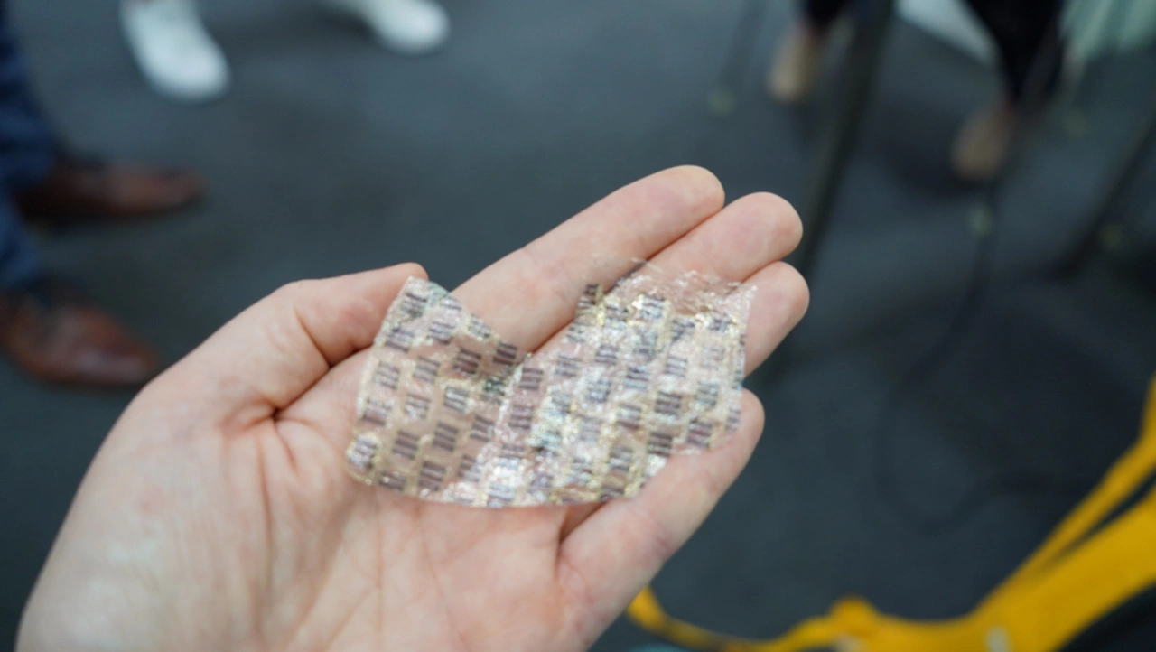 Nguyen erklärt gedruckte organische Sensorik ganz einfach: »Wir nehmen eine Etikettendruckanlage von Heidelberger Druckmaschinen, 17 Meter lang und modifiziert – nur anstatt Etiketten drucken wir Sensoren«. Für die grüne Technologie wird funktionelle Tinte auf verschiedene Substrate gedruckt; meist ist das bio-abbaubare Folie, kann aber auch Papier oder ein ähnliches Material sein.