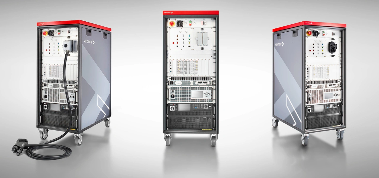 Das vCTS, kurz für Vector Charging Test System, ist ein modulares Testsystem für Ladekommunikationstests von Vector. Hersteller und Zulieferer von E-Fahrzeugen oder Ladestationen können damit umfassende Konformitäts- und Interoperabilitätstests zur Validierung der Ladekommunikation durchführen.