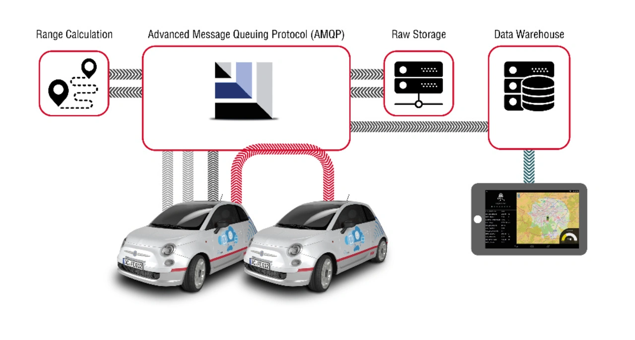 Ein Kernelement der vernetzten Fahrzeuganwendungen ist die Intelligent Connection Unit (iCU), die relevante Daten und Informationen unterschiedlicher Steuergeräte und Sensoren sammelt, analysiert und verarbeitet. Die iCU kann die bereits im Fahrzeug ausgewerteten Daten direkt via Dedicated-Short-Range-Communication (DSRC) und mobile Datenservices (3G, 4G oder 5G) an die entsprechenden Dienste weiterleiten. Die Herausforderung bestand darin, Daten aus einer großen Anzahl verschiedener Elektrofahrzeuge und Datenerfassungssysteme zusammenzuführen. Zwischengeschaltete Datenaggregations- und Datenkonvertierungsdienste harmonisieren die weitergeleiteten Datensätze.