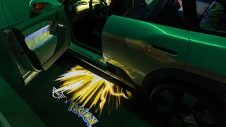 Durch eine fortschrittliche Projektionstechnologie erstreckt sich die Animation auch über das Dashboard, die Vordertüren sowie die Vorfeldprojektion. Im animierten Loop erscheint zunächst der Pokéball im OLED-Display und bewegt sich, um sich anschließend in einem blauen Schein zu öffnen, der eindrucksvoll vom OLED-Display über das Dashboard und die Lichtleiste der Türen sowie die Vorfeldprojektion durch den Fahrzeuginnenraum zieht.