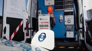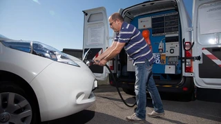 Für den mobilen »Quick-Charger« wurde ein Nissan NV400 entsprechend umgebaut. Mit Hilfe von 130 Lithium-Eisen-Tetraphosphat-Batterien hält die Schnell-Ladetankstelle 100 kWh aus erneuerbarer Solarenergie bereit und ist damit selbst stationsunabhängig. So lassen sich die Akkus des Leaf in weniger als 15 Minuten von 30 auf 80 Prozent ihrer Kapazität laden. An der festen Station am Flughafen sind in weniger als einer halben Stunde bei leerer Batterie wieder 80 Prozent der Kapazität erreicht.
