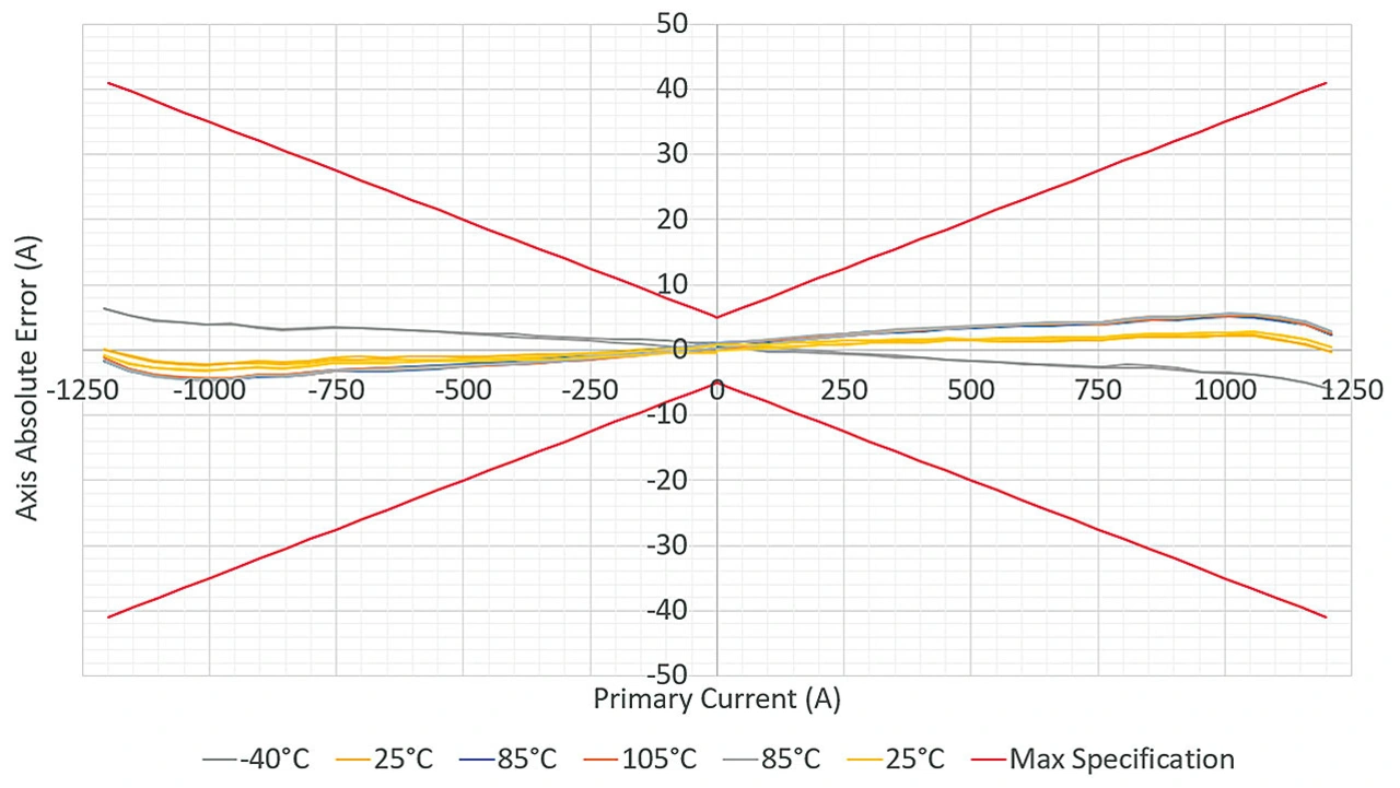 Da der Kern aufgrund von Platzbeschränkungen nicht vergrößert werden konnte, wurden die bei Danfoss vergossenen und bei LEM kalibrierten Muster während des Montageprozesses überprüft. Ziel war es, die Leistungsfähigkeit des neuen Konzepts in seiner endgültigen Konfiguration zu bestätigen, einschließlich der Genauigkeitstests bei unterschiedlichen Stromstärken und Temperaturen.