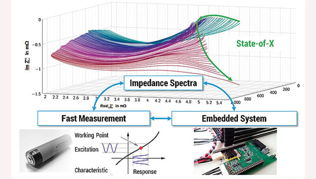 Um nun verlässlichere Informationen über den Zustand der Batterie zu erhalten, muss diese im laufenden Betrieb diagnostiziert werden Es wird somit ein Verfahren benötigt, das den aktuellen Zustand der Batterie direkt erfragen kann, und so eine Alternative zu den im Prüffeld gewonnenen Daten darstellt. Die dafür geeignete Methode ist die Impedanzspektroskopie. Dazu wird die Batterie mit variierendem Strom angeregt und zusammen mit der resultierenden Spannung zur Impedanz verrechnet. So lassen sich nicht-invasiv Batterie-interne Prozesse, wie zum Beispiel Ladungstransfer, Elektrodendegradation oder Diffusion, messen und bewerten. Auf diese Weise sind, basierend auf Messungen, Rückschlüsse auf den Zustand der analysierten Batterie möglich.