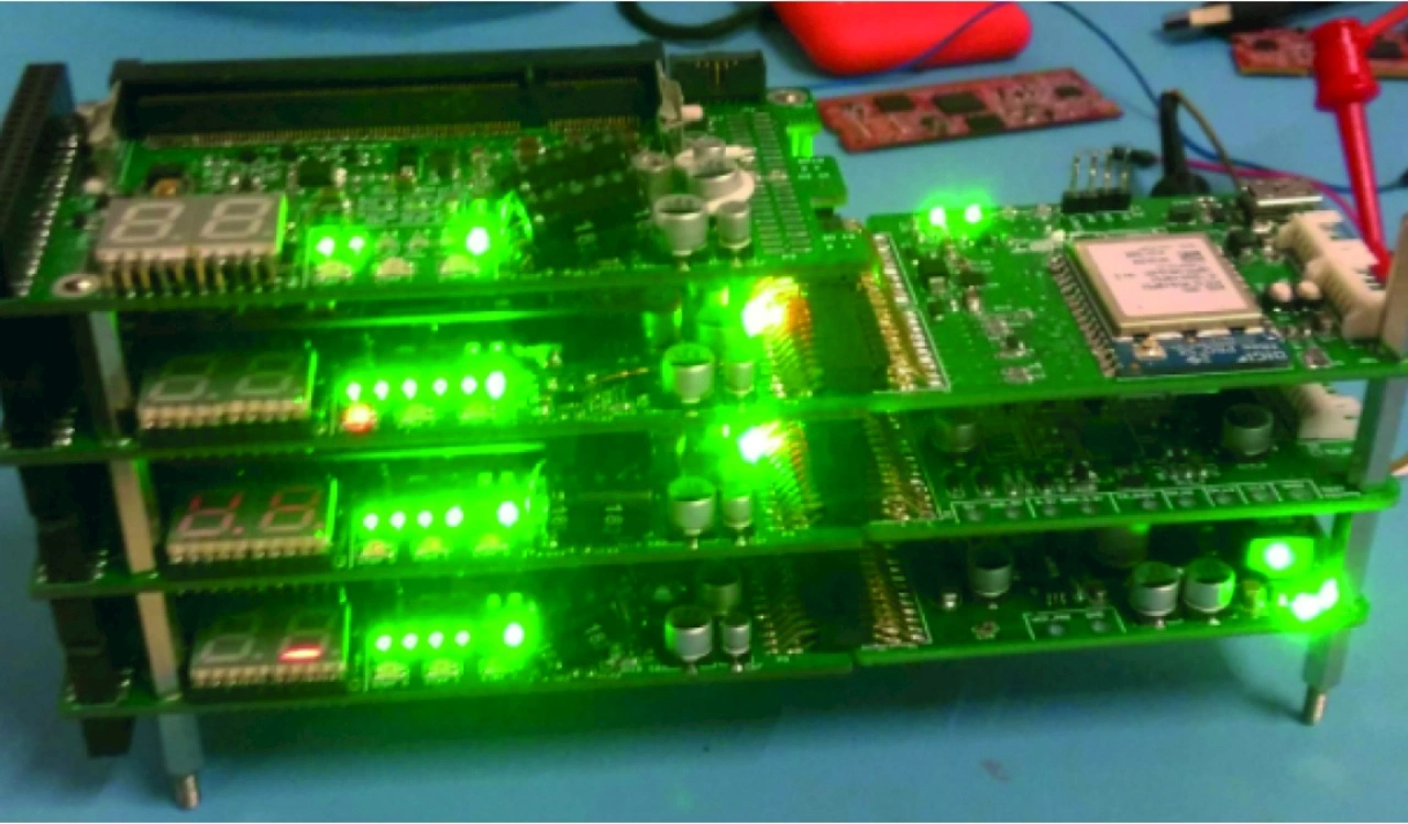 Jeder Knoten im CPS hat seine eigenen Tasks und auf jedem Kern wird ein anderer Code ausgeführt. Die Liste im Kasten »Die embOS-gesteuerten Knoten und ihre Aufgaben im Forze 9« auf Seite 26 beschreibt jeden Knoten und dessen Aufgaben in Kürze. Bild 5 zeigt einen Prototyp des CPS.