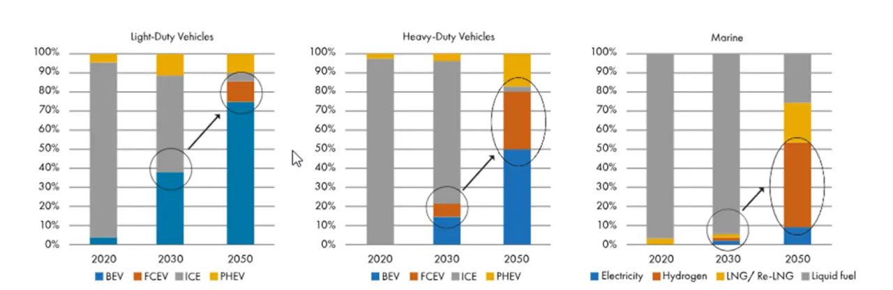 Dennoch haben HFC-Systeme Potenzial, wenn auch weniger im Individualverkehr. Ihre Vorteile: Sie zeichen sich durch ein geringeres Gewicht als Batterien bei höherer Leistungsdichte aus, sind schneller nachfüllbar und erzielen eine hohe Reichweite. Zudem eignen sie sich für den Dauerbetrieb. HFC-Antriebe sind daher für Schwerlast-Lkw, Busse, Züge, Seeschiffe und auch Flugzeuge von hohem Interesse (Bild 1). In all diesen Bereichen laufen derzeit Anwendungstests, was auch dadurch erleichtert wird, dass sich Tankanlagen für Wasserstoff in diesen Sektoren leichter zentralisieren lassen und somit keine flächendeckende Infrastruktur erforderlich ist.