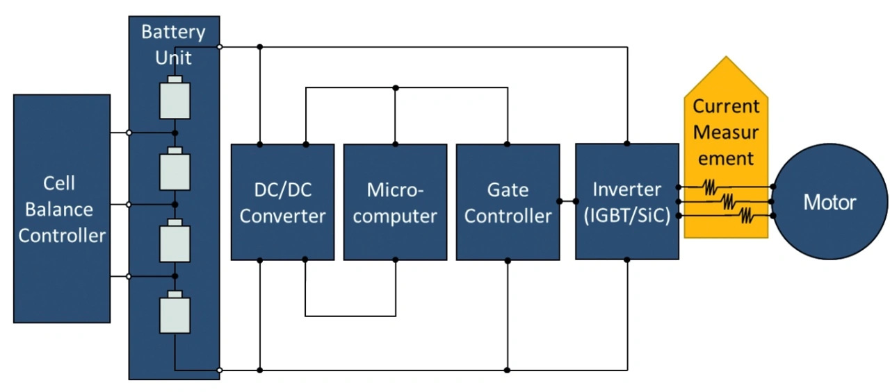 Die Miniaturisierung führt bei Invertern für die Kontrolleinheit des Elektromotors zu höheren Schaltfrequenzen. Dadurch steigt der Einfluss der parasitären Induktivität. Niederinduktive Shunts sorgen für die höchstmögliche Präzision bei der Messung des Antriebsstroms.