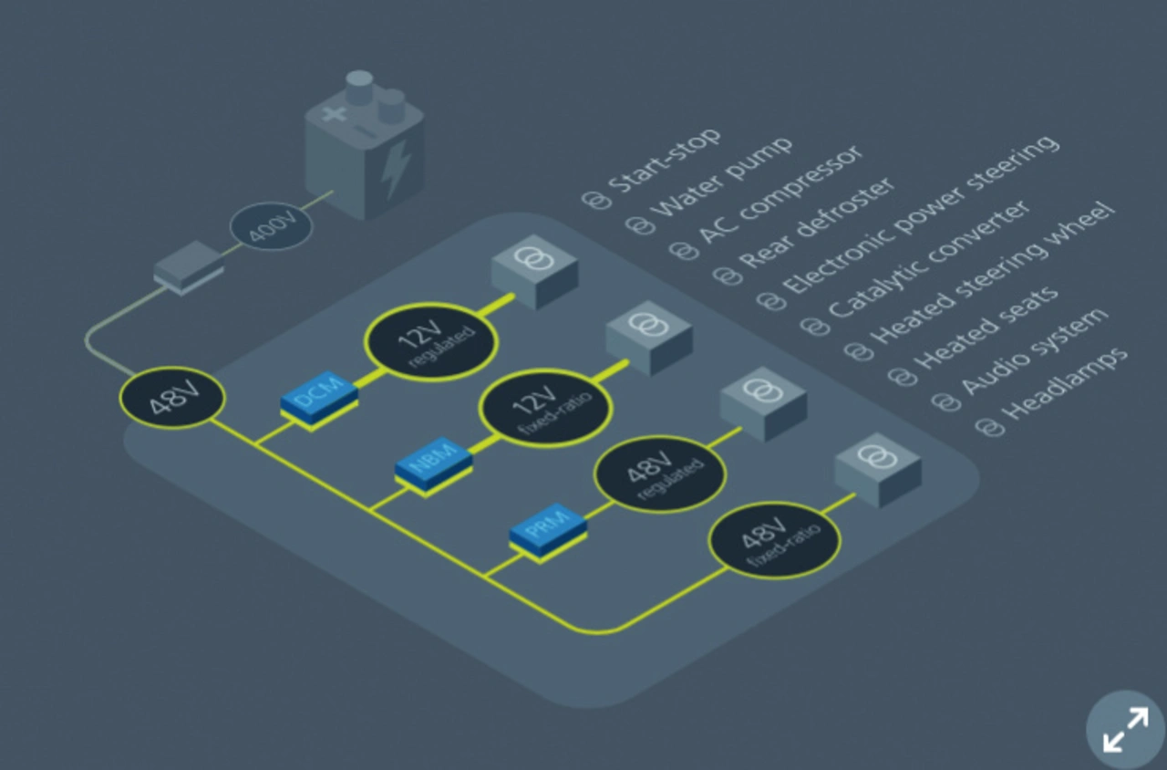 Elektrofahrzeuge verfügen auch heute noch über eine 12-V-Batterie für die Stromversorgung diverser Funktionen, die nicht mit dem Antrieb zusammenhängen, wie zum Beispiel Scheibenwischer, Sitzkomfortschalter und Infotainment. Einige Hersteller ersetzen derzeit bei neuen Modellen eine 12-V-Batterie durch eine 48-V-Batterie.