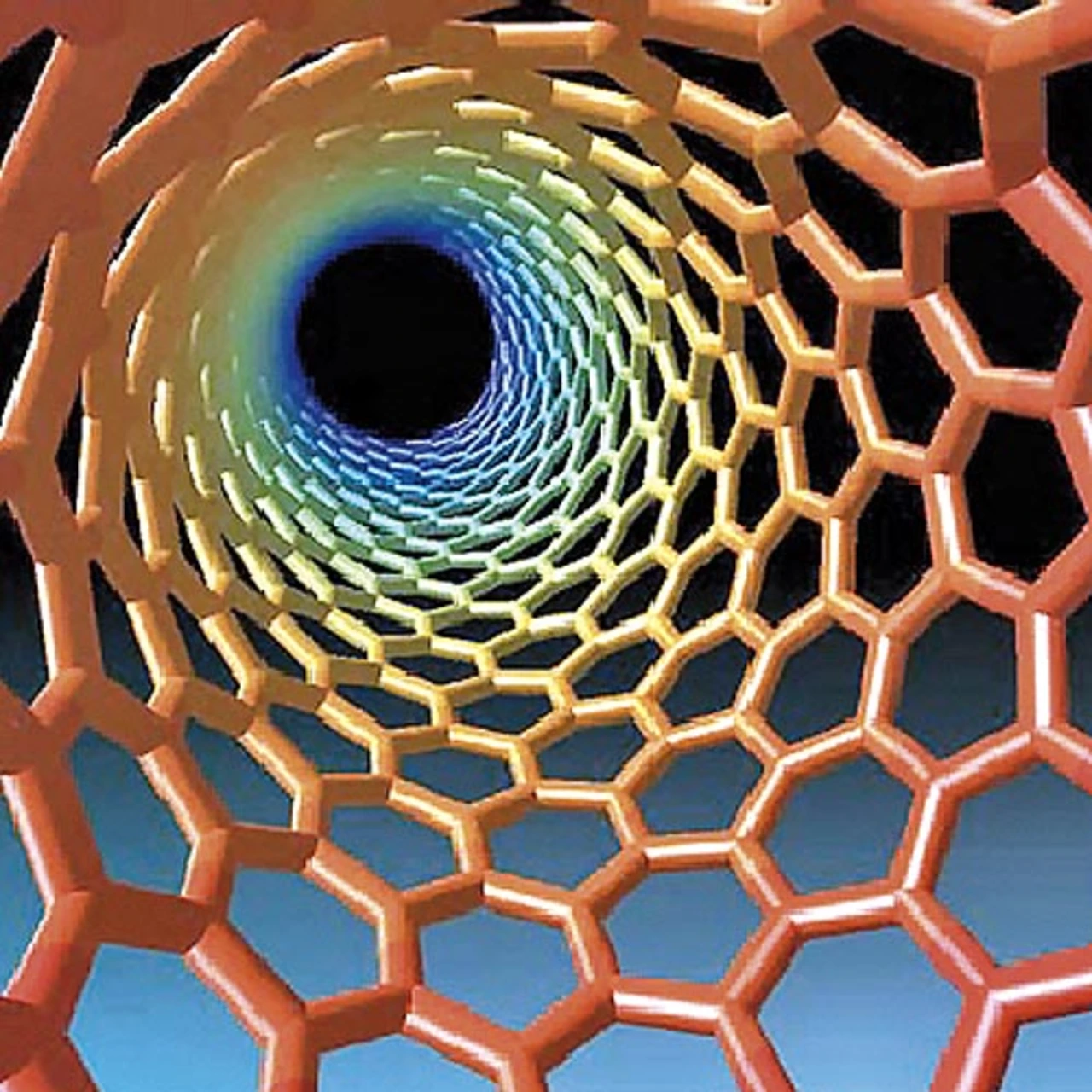 Ein weiterer Vorteil ist die gleichmäßige Wärmeverteilung durch die flächigen Leiterbahnen. Die Frontscheibe wird nicht ausgehend von den Heizdrähten, sondern an jedem Punkt gleich erwärmt. Die CNT-Schicht selbst speichert keine Wärme. Der Lack setzt die elektrische Energie fast vollständig in Wärme um und gibt diese komplett an die Scheibe ab. Die CNT-Widerstandsheizung lässt sich zudem problemlos in das übliche 12-V-Bordnetz integrieren. Bild 5 zeigt die mikroskopische Carbon Nano Tube im 3D-Format.