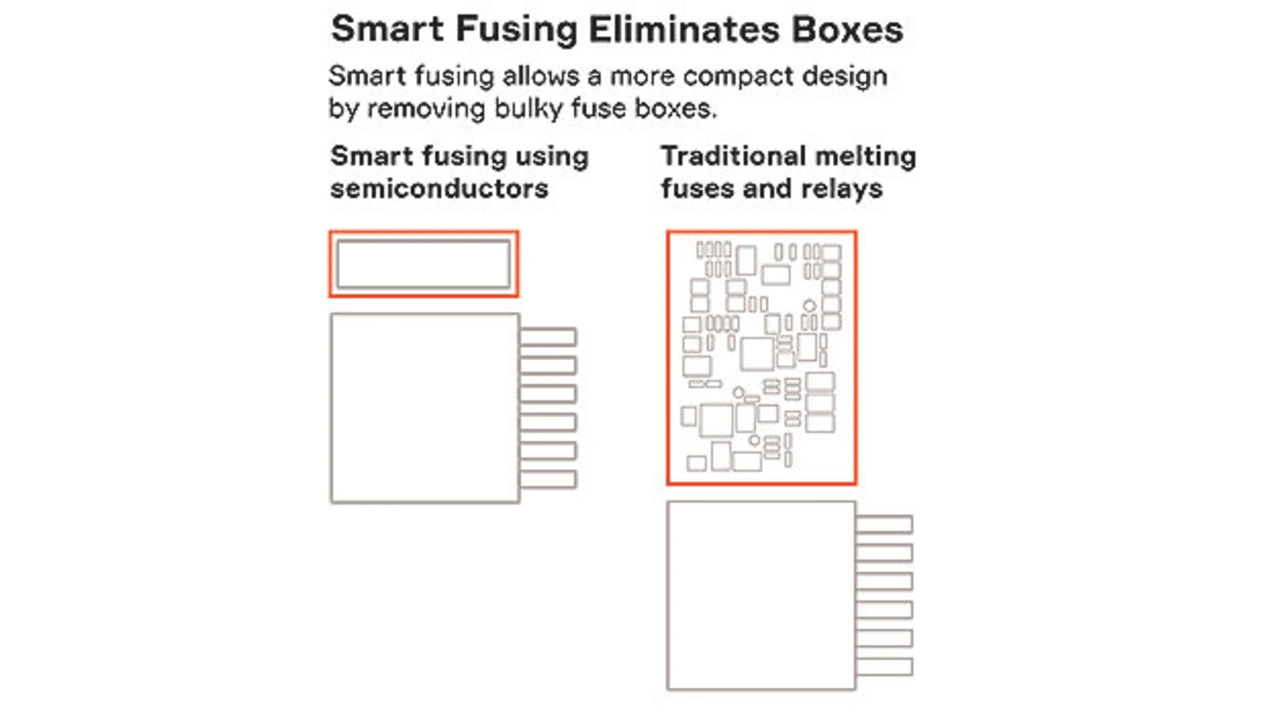 Zusätzlich lassen sich die Anzahl und das Gewicht von Kabeln reduzieren. Bisher mussten Leitungen oftmals mit einem um bis zu 30 Prozent größeren Durchmesser als physikalisch erforderlich ausgelegt werden, um genügend Toleranz für Spitzenlasten zu bieten. Die intelligente Energieverteilung auf Halbleiterbasis reduziert den notwendigen Drahtquerschnitt signifikant, da temporär eine höhere Spitzenlast zugelassen werden kann.