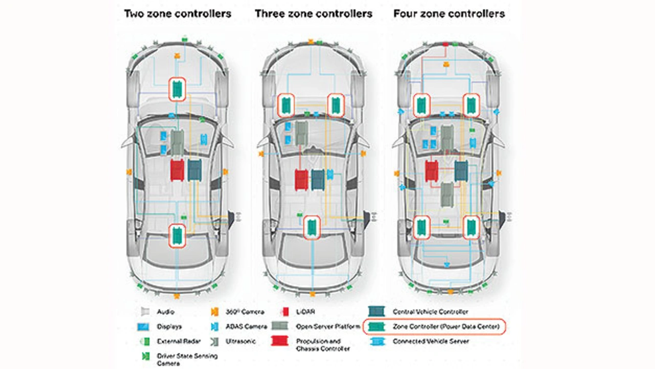 Mit Zonen-Controllern lassen sich die Energieverwaltung und die Datenübertragung im Fahrzeug optimieren. Die Fahrzeugarchitektur wird simpler, neue Funktionen sind einfacher integrierbar. Das ist wichtig, um aktuelle und künftige Herausforderungen im Fahrzeugdesign lösen zu können