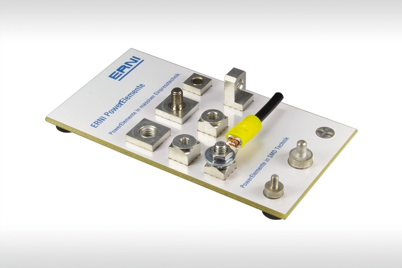 Trotz ihrer Winzigkeit halten die ERNI PowerElemente im Betriebstemperaturbereich von -40°C bis +155°C einiges aus. Ein Grund dafür ist ein Werkstoff mit hoher Härte und Festigkeit – ideal für hoch belastbare Stromkontakte, die höchsten Ansprüchen genügen, beispielsweise für die Leistungselektronik, für das Batteriemanagement im Automobilbereich oder für Antriebe, Wechselrichter und Stromrichter. Auch Bauelemente wie Schraubsicherungen, Relais oder Stromschienen lassen sich mit den PowerElementen anschließen und fixieren. Bei der Vielfalt und den Anschlussmöglichkeiten gibt es bei ERNI kaum Grenzen.