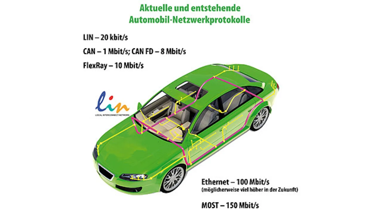 Die Zahl an Infotainment-, Sicherheits-, Komfort- und Antriebsstrang-Funktionen im Fahrzeug steigt immer mehr und damit auch der Kommunikationsbedarf der Steuergeräte. Dazu kommen die verschiedenen Bussysteme – angefangen von CAN (bald auch CAN FD) über LIN bis FlexRay, MOST und Ethernet zum Einsatz. Wie diese unterschiedlichen Standards in welcher Form implementiert werden, müssen die OEMs entscheiden.