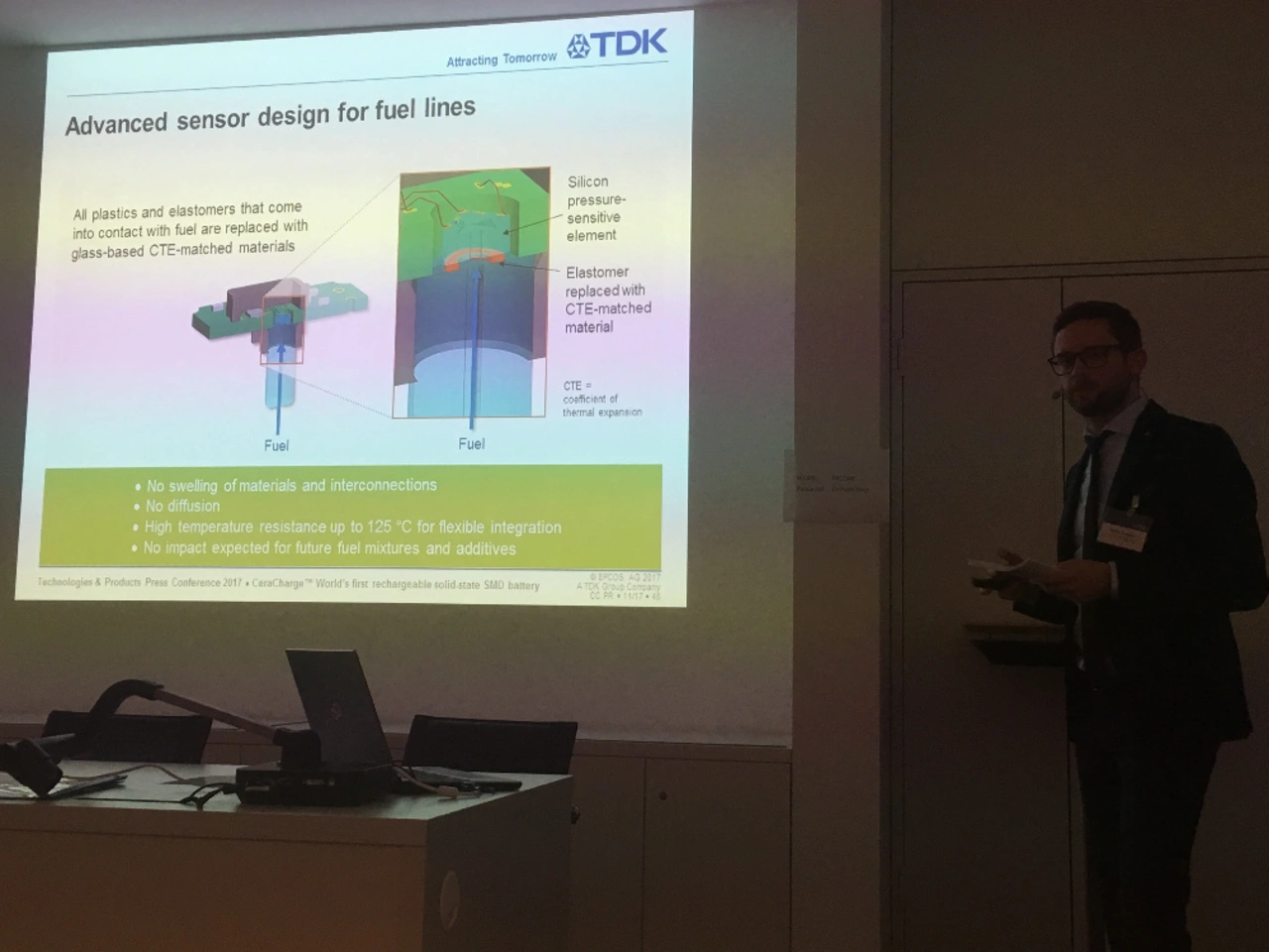 Tankdruck-Überwachungssysteme verhindern das unkontrollierte Entweichen von Kraftstoffdämpfen in die Umwelt und messen, wenn Hybridfahrzeuge im Elektrobetrieb arbeiten oder Fahrzeuge abgestellt werden. Die Systeme erkennen bereits kleine Abweichungen von Druck und Temperatur. Mit der verbesserten Kalibrierungsmethode, die speziell für die Erkennung von Leckagen entwickelt wurde, erreicht TDK bei einer relativen Druckmessung eine Genauigkeit von bis zu 0,2 Prozent. Der neue Drucksensor ermöglicht die Relativdruckmessung in dem für Applikationen in Hybridfahrzeugen typischen Bereich von -100 mbar bis + 350 mbar. Er verfügt über eine digitale Schnittstelle mit SENT-Protokoll und ermöglicht neben der Druckmessung auch die Aufnahme von Temperaturwerten.