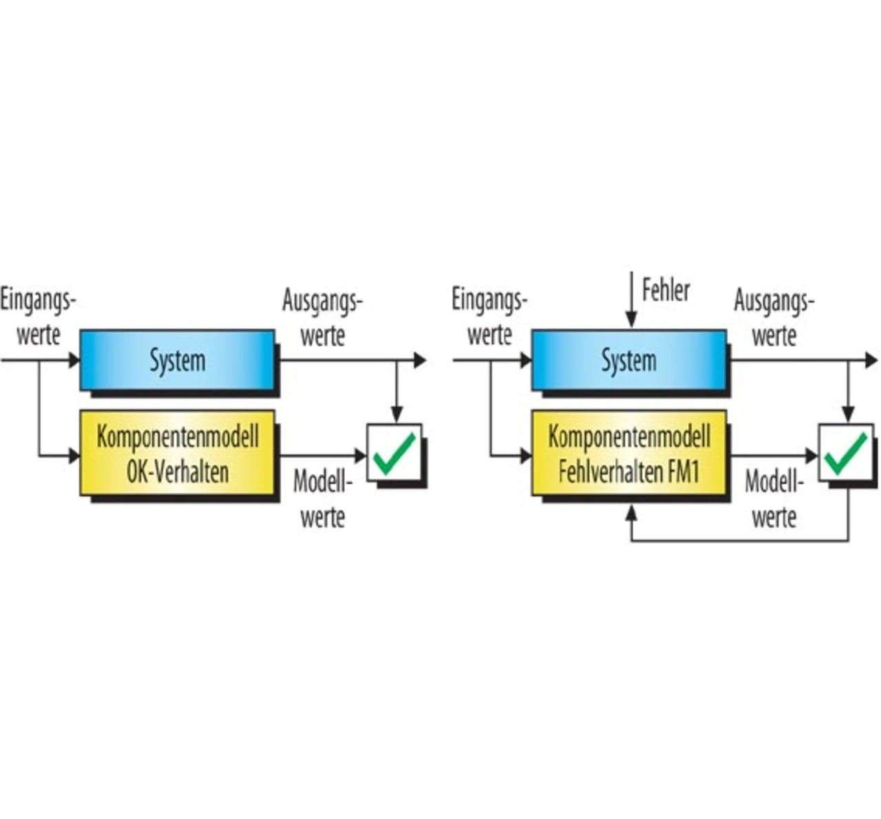 Die modellbasierte Diagnose wurde Ende der 80er-Jahre aus dem Bereich der künstlichen Intelligenz entwickelt, woraus verschiedene, teilweise kommerzielle Produkte entstanden. Prinzipiell wird bei der modellbasierten Diagnose das zu überwachende System modelliert und simuliert (Bild 1). Im i.O.-Fall entspricht dieses Modell einem abstrakten Funktionsmodell des Systems, im Fehlerfall jedoch werden so lange verschiedene Fehlermodelle eingesetzt, bis das simulierte Modellverhalten wieder dem beobachteten Systemverhalten entspricht. Damit erklärt der modellierte Fehler (Fehlermodell) das beobachtete Verhalten des Systems. Mit dieser Methode kann also auch bei sehr komplexen Fehlerbildern die Fehlerursache identifiziert und lokalisiert werden.