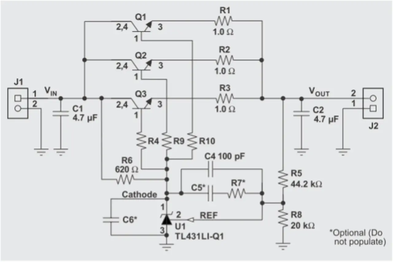 Eine diskrete Lösung, die den TL431LI-Q1 verwendet und mehrere bipolare Sperrschichttransistoren (Bipolar Junction Transistors, BJTs) zur Verteilung der Verlustwärme nutzt, erlaubt das Design eines leistungsstarken und kosteneffektiven linearen Vorreglers. Dieser Beitrag beschreibt im Weiteren, wie man einen solchen linearen Regler angepasst an spezifische Anforderungen und die gängigen Herausforderungen entwickelt.