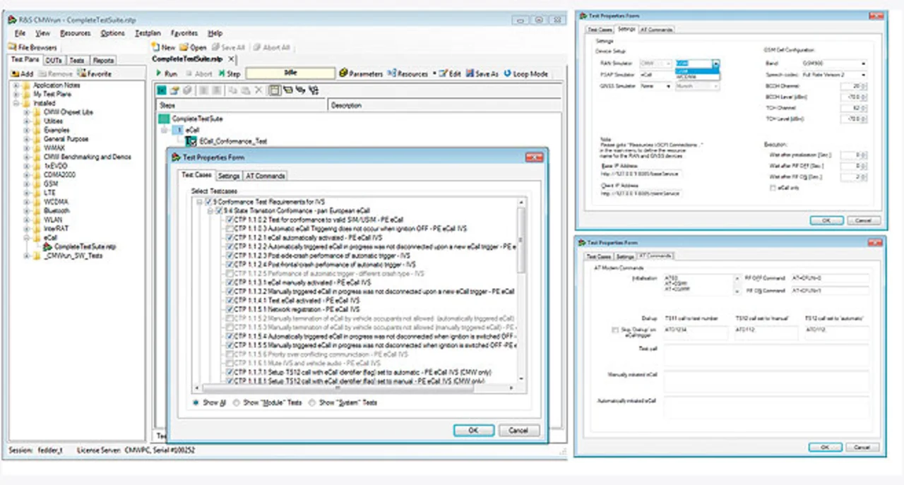 Eine Test Sequencer Software erleichtert diese Aufgabe. Für den Wideband Radio Communication Tester des eCall-Testsystems entwickelte Rohde & Schwarz die Sequencer Software R&S CMWrun. Sie erfüllt alle Anforderungen für die Ausführung und Fernsteuerung von Testsequenzen und basiert auf der Ausführung von Test-DLLs.