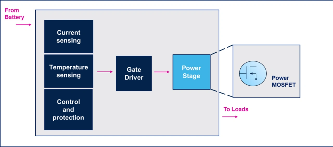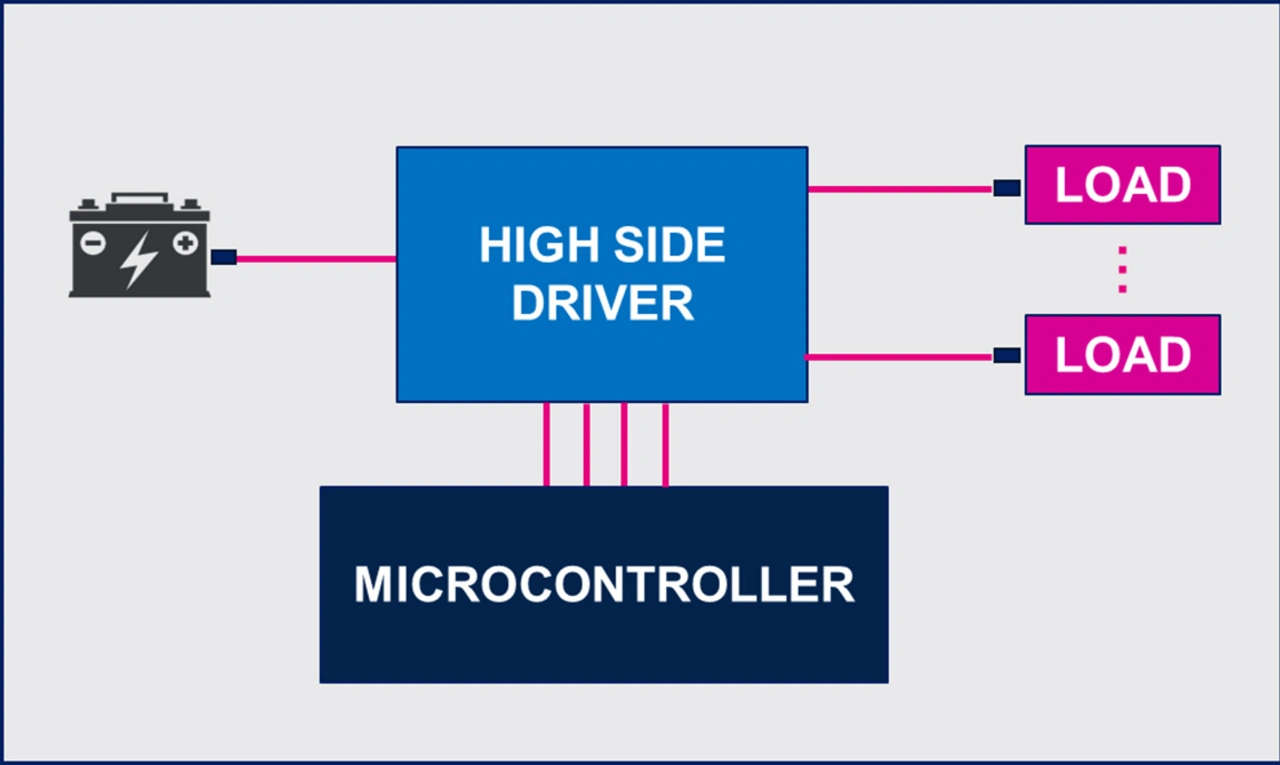 Eine effektive Lösung für verteilte Intelligenz im Batteriemanagement-Bereich benötigt High-Side-Treiber (engl. High-Side Driver, HSD) zum elektronischen Ein- und Ausschalten der verschiedenen Verbraucher.
