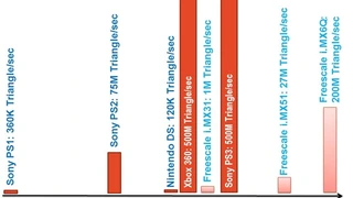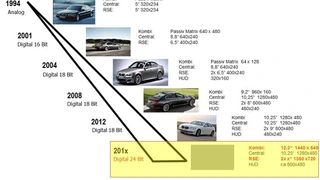 Diese Displays werden hochauflösende HDTV-Inhalte anzeigen können oder als Ersatz für Zeigerinstrumente das komplette Instrumentenkombi ersetzen. Die 3D-Rechenleistung von Grafikprozessoren für den Einsatz im Auto erreicht heute schon mit bis zu 200 MTriangle/s mehr als das doppelte der Playstation 2 mit ihren 75 MTriangle/s (Bild 2).