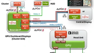 Die Trennung von Bilderzeugung und Display bedingt allerdings einen leistungsfähigen Video- und Daten-Link, der in Hinsicht auf Systemkosten, EMV und Bauraum die automobilen Anforderungen erfüllen muss.