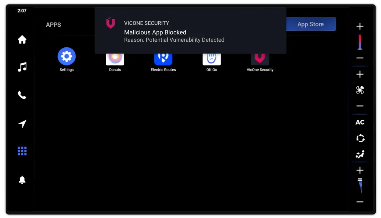Das Ökosystem der Fahrzeug-Apps könnte sehr wahrscheinlich eine ähnliche Entwicklung nehmen. In dem Maße, in dem der Mikrokosmos der Fahrzeug-Apps wächst, steigt auch das Risiko, dass schädliche Apps in die Fahrzeugsysteme eindringen. Dabei tarnen sie sich oft als Tools, die etwa das bordeigene Infotainmentsystem (IVI) eines Fahrzeugs verbessern oder die Leistung steigern sollen. Doch anstatt echte Vorteile zu bieten, können sie personenbezogene Daten stehlen, Betrug begehen, Ransomware einsetzen oder Adware verbreiten.