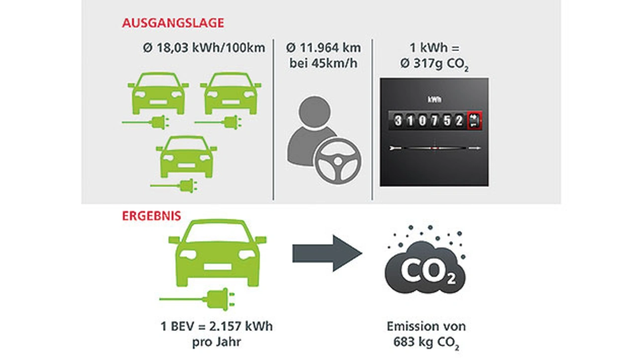 Die Top Ten der in Europa verkauften Elektrofahrzeuge benötigen durchschnittlich – gewichtet nach ihrem Marktanteil – 18,03 kWh pro 100 km. Hierbei sind Ladeverluste nicht einberechnet. [1] Der durchschnittliche Europäer legt dabei im Jahr 11.964 km im Auto mit einer Geschwindigkeit von 45 km/h zurück [2, 3]. Bei der Erzeugung einer Kilowattstunde (kWh) an Energie werden in der EU durchschnittlich 317 g an CO2 emittiert. Dieser Wert schwankt zwischen den einzelnen Ländern der EU stark, zeigt aber seit vielen Jahren einen stetigen Abwärtstrend. Insgesamt wurden im Jahr 2020 in der EU 15 Millionen Fahrzeuge verkauft [4]. Davon handelte es sich bei 1,4 Millionen Fahrzeugen um PHEV, FCEV oder BEV [5].