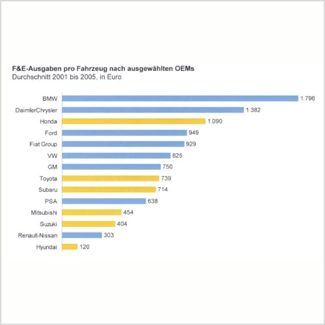Heute investiert die Automobilindustrie jährlich etwa 68 Mrd. Euro in Forschung & Entwicklung (F&E) und beschäftigt weltweit 800 000 Ingenieure. Doch 40 Prozent aller F&E-Investitionen fließen in Projekte, die es nicht ins Serienauto schaffen oder die aufgrund ungenügender Kundenakzeptanz nie in ausreichender Stückzahl produziert werden. Weitere 40 Prozent werden für die Serienentwicklung sowie für die Erfüllung gesetzlicher Auflagen benötigt. „Bisher dient nur ein Fünftel aller F&E-Entwicklungen der Differenzierung im Wettbewerb“, glaubt Dr. Jan Dannenberg (Bild 2), Direktor bei Oliver Wyman. „Diesen Anteil auf 30 Prozent und mehr zu erhöhen, muss das Ziel aller Hersteller und Zulieferer sein.“ Denn bis 2015 wird die Branche rund 800 Mrd. Euro für F&E ausgeben, wobei ca. 40 Prozent davon Fehlinvestitionen sein werden, so die Prognose von Oliver Wyman.